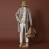 繊細で上品な印象を与えるヘリンボーン柄面とツイード調の柄面の、ベーシックで普遍的なパターンに仕上げた、どちらの面も着用できるリバーシブル仕様。