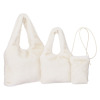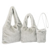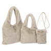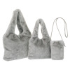 ミンクのような、ふんわりと柔らかな風合いのフェイクファーを使用した、大きめのトートバッグとミニバッグ、縦長ポシェットの3点セットです。