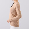 ラグランスリーブでアームホールの締め付けが少なく、ゆったりとしたサイズ感ながら、首元や袖口はほっそり見えるように調整しています。