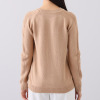お襟の開きが綺麗なシンプルなニットは、ゆったりしたサイズ感ですが、細見えします。温かみのあるキャメル色はブルべでも似合いました。
