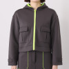 フード裏には目を惹くビビッドカラーのメッシュ素材を重ね、スポーツミックスな雰囲気を演出しています。