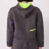 配色がまず気に入りました。ミルクチョコの様な茶色にフードが蛍光の明るい黄緑色という配色が好きですね。箱から出してその配色にハッとしました。丈の短めのパーカーは始めてですがなんかオシャレです。季節がらセールで買えました。マチコさんの色のセンスはお気に入りです。紺色をベースにした配色もいいですね。色々揃えてます。これからも期待しています。