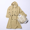 はっ水機能のあるフード付きのトレンチコートと、適度な大きさのトートバッグの2点セットです。