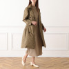 フロントのボタンを全開しても、付属の共布ベルトでウエストマークしてもサマになります。