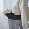 ウエスト部分は伸縮性素材使用しており、コーディネイトや身長に応じて、胸下〜浅履きまで長さをアレンジできます。