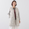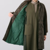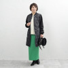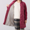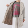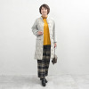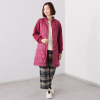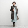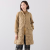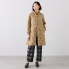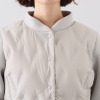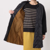 低めのスタンドカラーが首元をやさしく包み込み、スタイリッシュな印象を与えます。