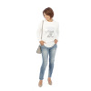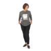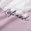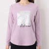 クルーネックにラウンドヘムという定番デザインに、大きな箔プリントと刺しゅうを重ねることで、カジュアルさと上品さをミックスしました。