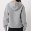 袖はモード感のあるドロップショルダーを採用し、フードはコンパクトなつくりで大人っぽさを演出。