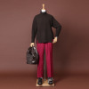 前身頃はアームホール下から裾に向かって斜めに切り替えを入れ、さらに、切り替えの延長線上にスリットを入れて、細見え効果を狙いました。