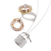 敷き詰められたCZが煌びやかな存在感を放つ、パドロックモティーフのネックレスです。