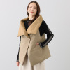 高さのある襟は、そのままでも暖かく、折り返すとビッグカラーとなり、お顔周りを華やかに演出します。
