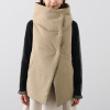 前を閉じると折り返し襟がアシンメトリーになり、ドットボタンとともにエッジの効いた印象に。