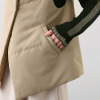 表側は細かい横畝の布帛生地、裏側は艶感のある高密度タフタを使用し、素材感にメリハリをつけました。