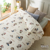 <西川>より、スヌーピーの仲間たちのもこもこシルエットがかわいらしい、やさしい色味とふわふわの肌触りのあったか掛けカバーです。