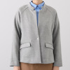 バンドカラー風のデザインで、カジュアルな印象を演出しつつ、身頃は本格的なジャケットの作りになっています。