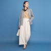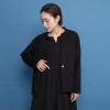 ボタンは一つだけの本物の貝ボタンを使用し、カーディガンのような気軽さを演出。
