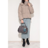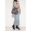 ころんとかわいいデザインで、部分的に配したラムレザー調のフェイクレザーがアクセントになっています。