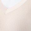 リブ調のパターンメッシュに編み立てた身生地でフィット感をアップしつつ、細見えを狙い、胸元のストレッチサテンでシャープさと華やかさを演出しました。