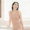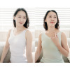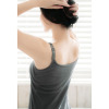 口コミに「いやらしく見えない。サテンがいい仕事してる」みたいなことが書いてあったのでポチッ。服はLサイズでも、タンクやキャミは袖ぐりがキツいからLLにして正解。ただ、そうするとカップも大きくなりブカブカ。かさばるカップをつり下げる生地(綿混で◯)は背中までぐるりで、暑い。⇒ごみ箱行きです。リーフは綺麗な色でしたが。