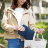 2つ折りにしてボタンを留めればコンパクトになるので、バッグに入れて持ち歩くことができます。