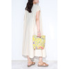 開口部を絞って巾着風、二つ折りにすればクラッチ風にアレンジ可能。
