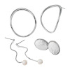 シンプルで抜け感のある、オーバルデザインのメタルイヤリング/ピアスが1点、シンプルモダンなテイストのイヤリング/ピアスが2点入った計3点セット。