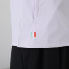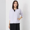 シンプルなデザインながら、前身頃の裾のトリコロールカラーの刺しゅうがアクセントとして映え、上品さと遊び心を演出。