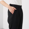 細すぎないテーパードシルエットと、落ち感と肌離れの良い素材で、スタイルアップ効果が期待できそう。