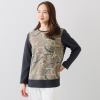 ブラウンをいただきました。思った通りでとても素敵でした。薄手だけれど体の線をひろわず、袖は無地だからかほっそり見えます。服では久々に自分の中で大ヒットです。