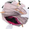 フロントの上部にスマートフォンなどの小物を収納できるファスナーポケットを配し、内側にナスカン付ストラップを配しており、カギなどの迷子を防止。