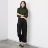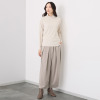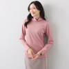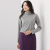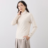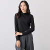 ハイネックよりもコンサバ過ぎず、クルーネックよりも上品な印象を与えるオフタートルネックは、首元の位置が絶妙で、気になる部分をさりげなくカバーしつつ、あごのラインをシャープに見せる効果も。