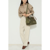ゴールドカラーの金具やファスナー引き手、ブランドのロゴプレートが女性らしさを演出し、さまざまな装いに合わせやすいデザイン。