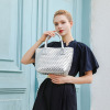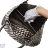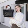 柔らかな合成皮革を手編みで仕上げた、軽量で立体感のあるデザイン。