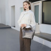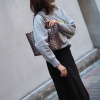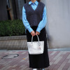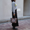 シンプルなシルバーのトート。小ぶりなサイズ感も希望通りで購入して正解でした。シルバーのフラットシューズに合わせて涼しげな装いで颯爽と街を闊歩します♪