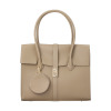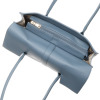メイン室は2層構造になっており、前面はかぶせ式でベルトデザインと金具留めがアクセントに。