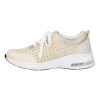 アッパーにひし形とピンドットのパンチング加工をほどこし、デザイン性と通気性を両立しました。