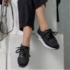 レースアップデザインながら、内側にファスナーをプラスしており、スムーズな着脱が行えます。