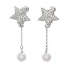 耳たぶにそっと収まる程良いサイズのスターモティーフと、コロンとした愛らしい淡水パールが揺れ動く、キュートな仕上がり。