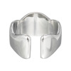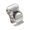 以前に11号サイズを2つ、購入しました。デザイン的に小さめだと、指にしっかりくい込んでしまい、使いにくく感じました。その輝きか気に入ったのと、デザインの新鮮さに惹かれて、13号サイズを購入しました。今度は、指を選ばず薬指にも、中指にもフィットします。相変わらず顔が映る程