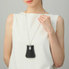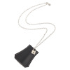 レザー調のクロシェットモティーフにキラキラと輝くキーチャーム、そしてフィガロチェーンを組み合わせた、モダンでスタイリッシュなロングネックレスです。