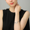やさしい丸みを帯びたオープンオーバルモティーフが、優雅に手首にフィット。