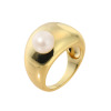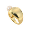 丸みを帯びたぷっくりとしたフォルムに、淡水ボタンパールをひと粒あしらった大人かわいらしいリングです。