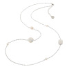 ケーブルチェーンは、面が平らに加工されているため、動くたびに繊細な輝きを放ち、パールの光沢と相まって、より一層の煌めきを演出します。