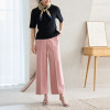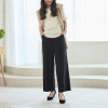 身体に張り付きにくく直線的に足元に落ちていくワイドシルエット。