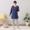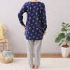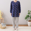 上のミモザ柄と紺の配色は好みです。Vネックで首が入りやすく、手首が締まっているのも良いです。下は薄手でヨレヨレ気味ですが柔らかく履きやすい。セールで購入できたのでラッキーでした。パジャマでなら満足です。