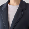 襟から前端、ポケット口、後ろ袖接ぎ部分にパイピングをほどこし、シンプルながらデザイン性の高い一着に。