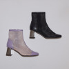 足なじみの良いチュール素材と柔らかなシープレザーを使用した抜け感のあるデザイン。