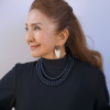 中サイズネックレスは取り外しができ、短・長サイズの2連や中サイズのみの1連でお使いいただくことも可能。