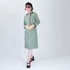 前身頃にあしらった飾りのダブル仕立てのボタンが洗練された印象を与えます。