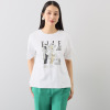 157cm、49kg、ホワイトのS〜Mサイズを購入。個性的なイラストがとても可愛いです。お色は艶があり、とても綺麗です。襟の開き具合も良いです。ゆったりとしたお作りですが、脇から斜めに入った切替えが効いていて野暮ったくありません。私の身長でお尻半分の丈です。その為、この丈のTシャツが似合わなくなっている中、こちらは女性らしいラインで素敵です。これからも素敵なイラストとカットのTシャツをお願い致します。